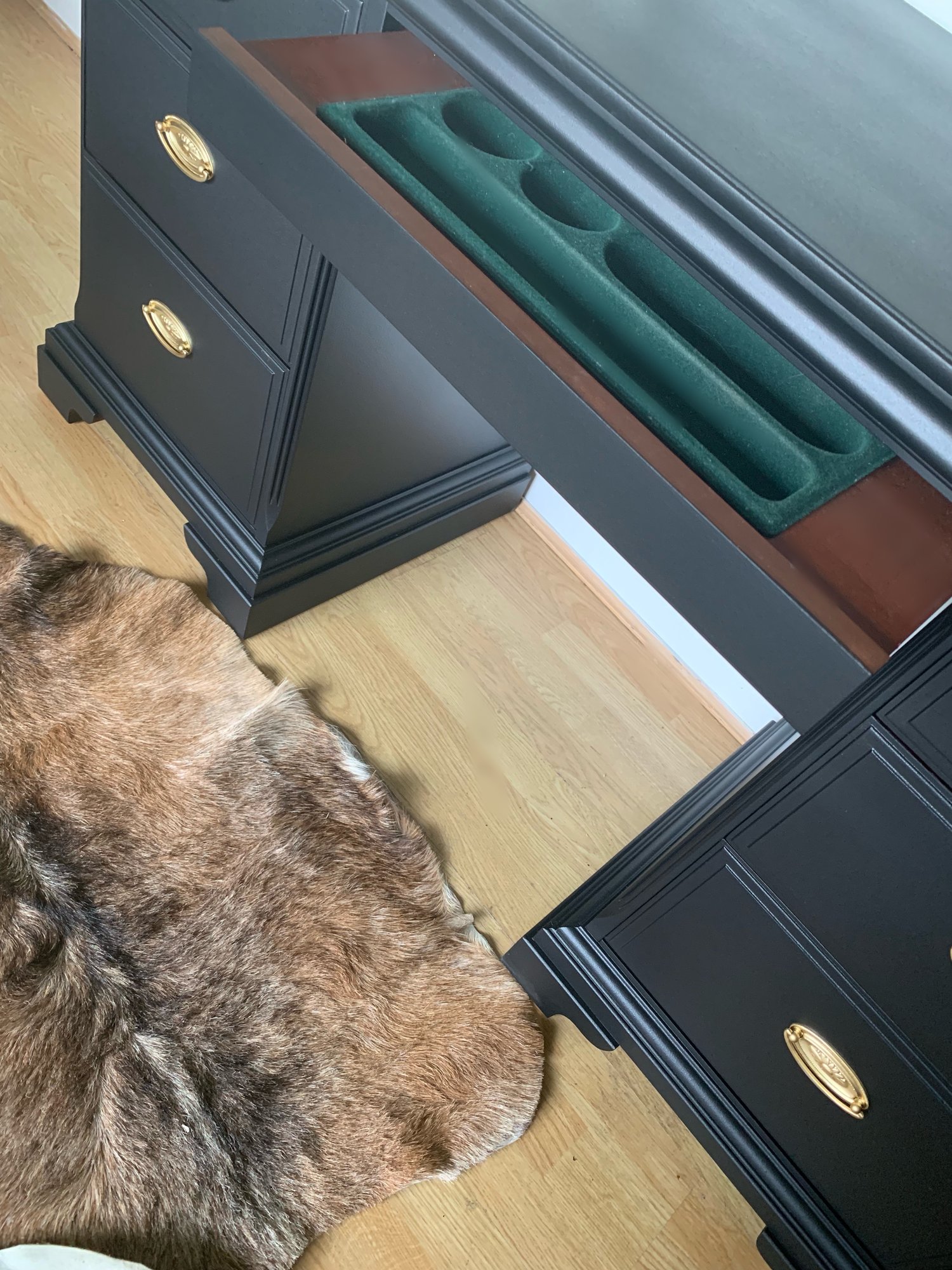 Painted in black and sealed with a Matt varnish to seal & protect.