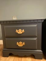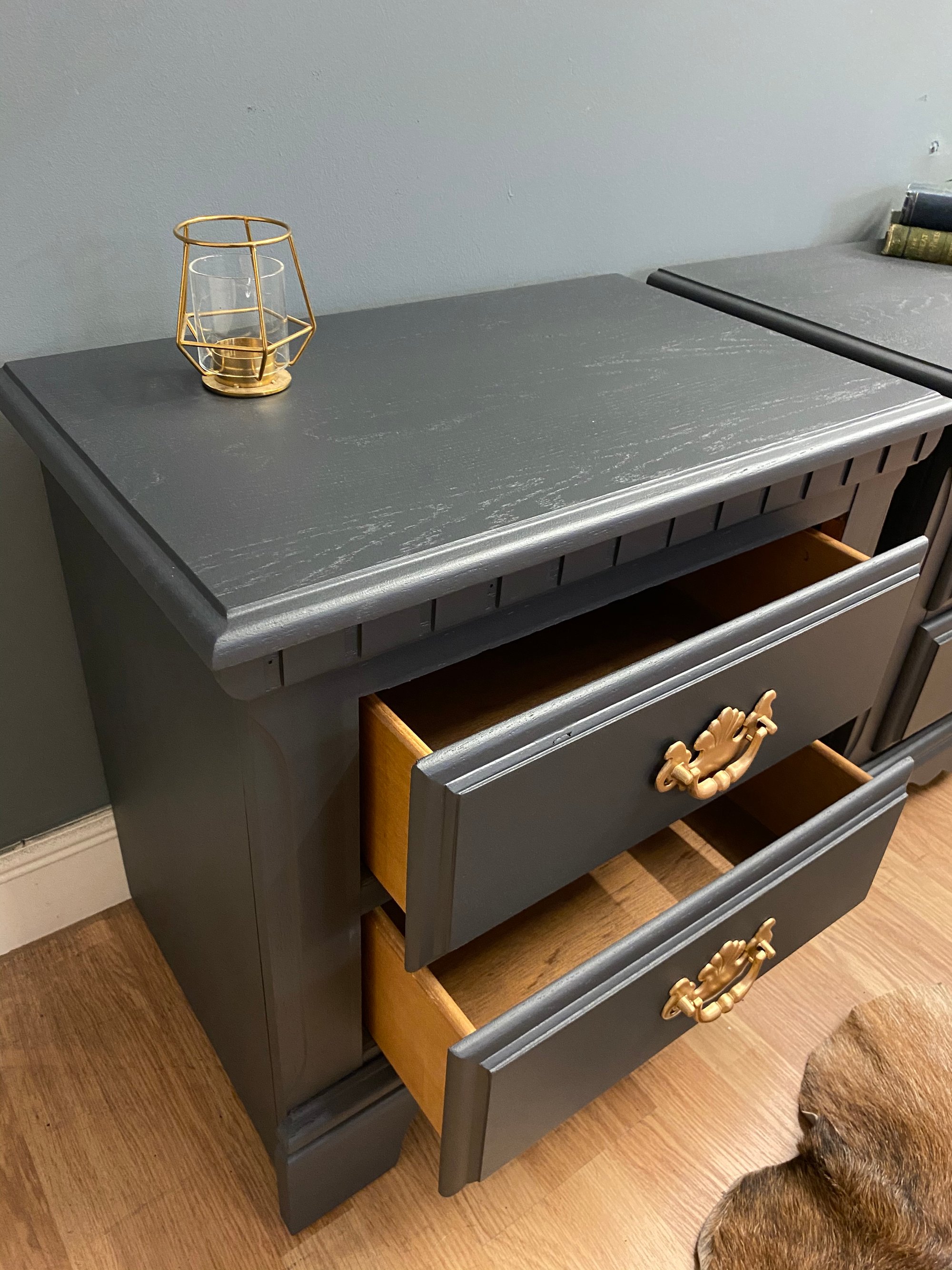 This pair came in a set consisting of a tall boy and low chest of drawers.