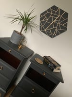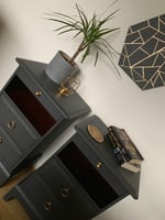 Painted in dark grey with gold hardware.