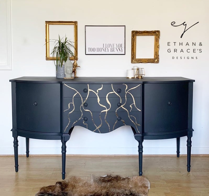 A stunning dark grey & gold leaf sideboard