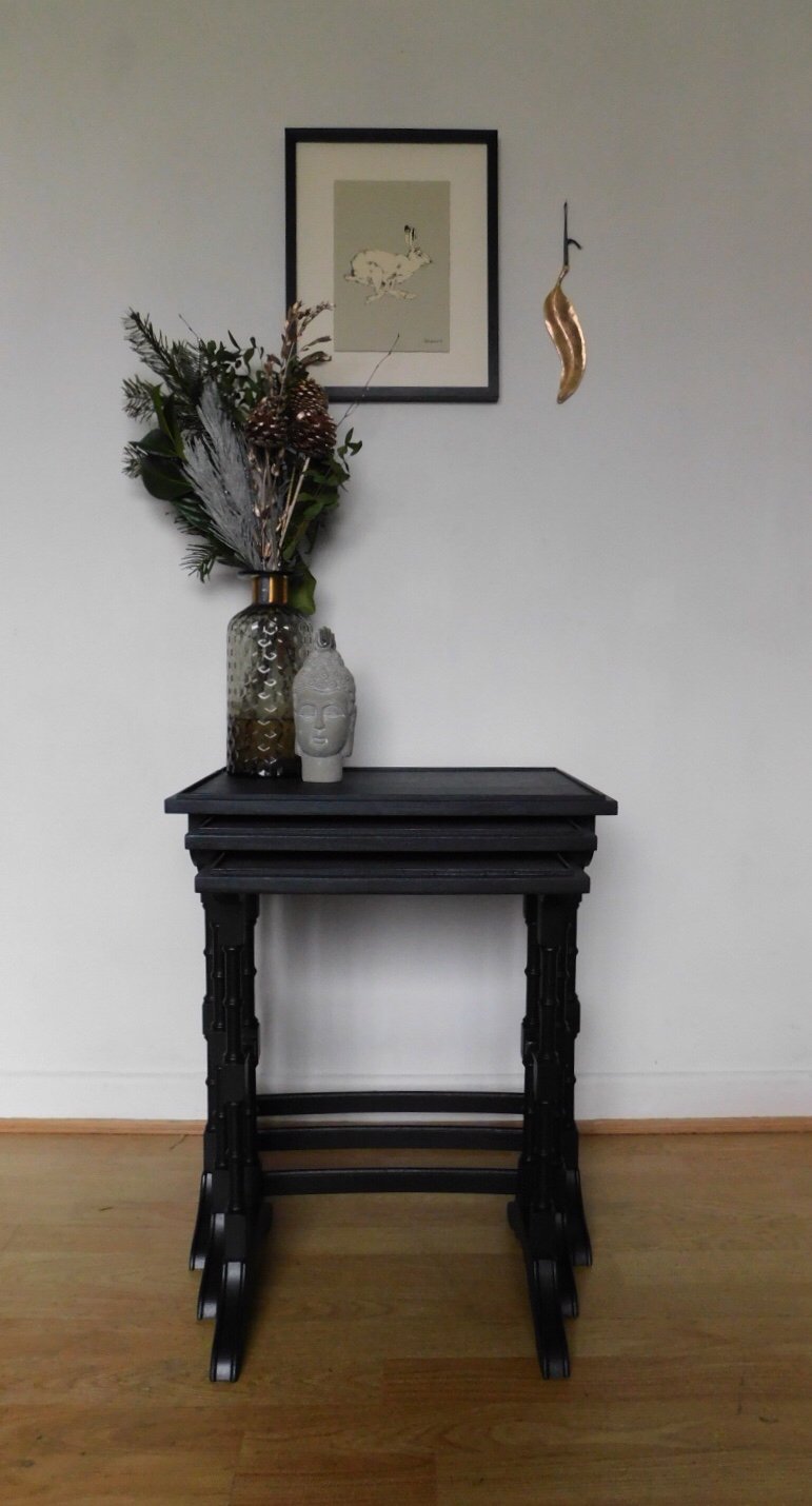Painted in a black & sealed.....the top edges have been lightly distressed.