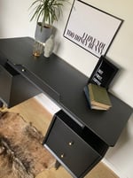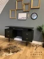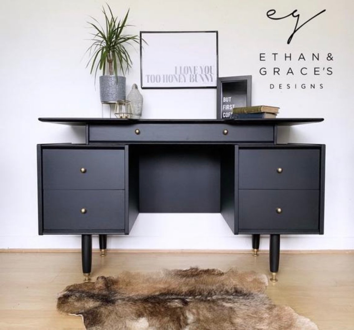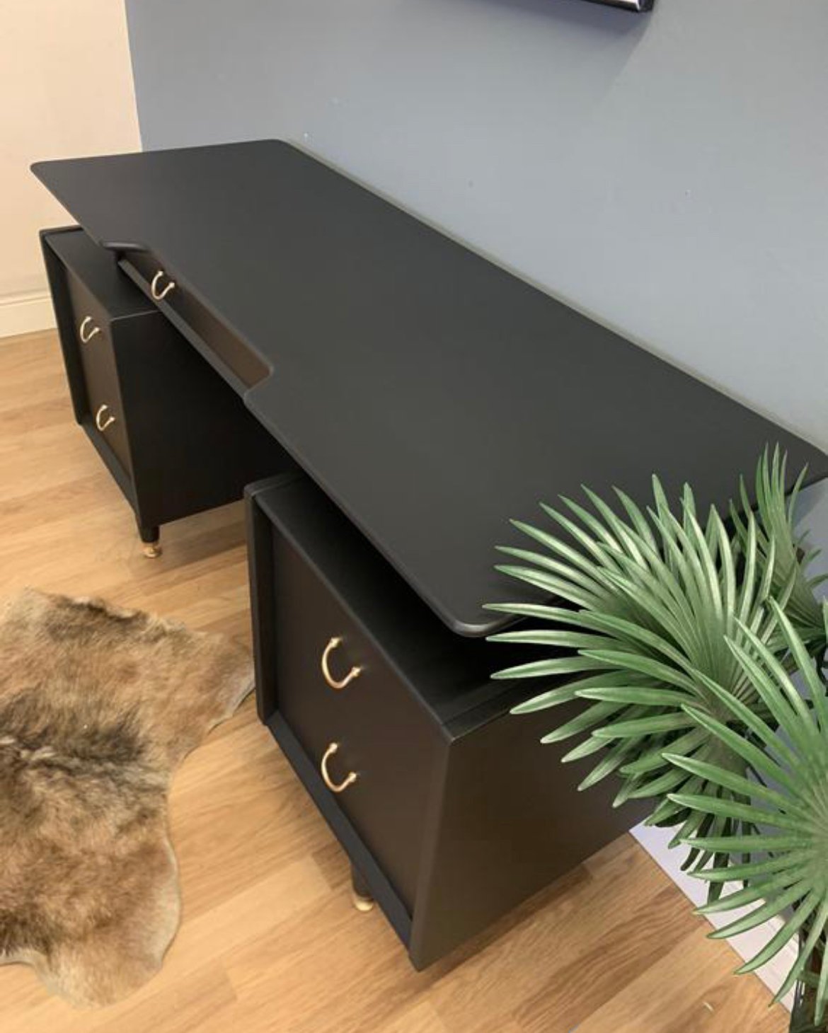 This piece has been stripped down then painted in a Matt black. Sealed with a Matt varnish to seal.