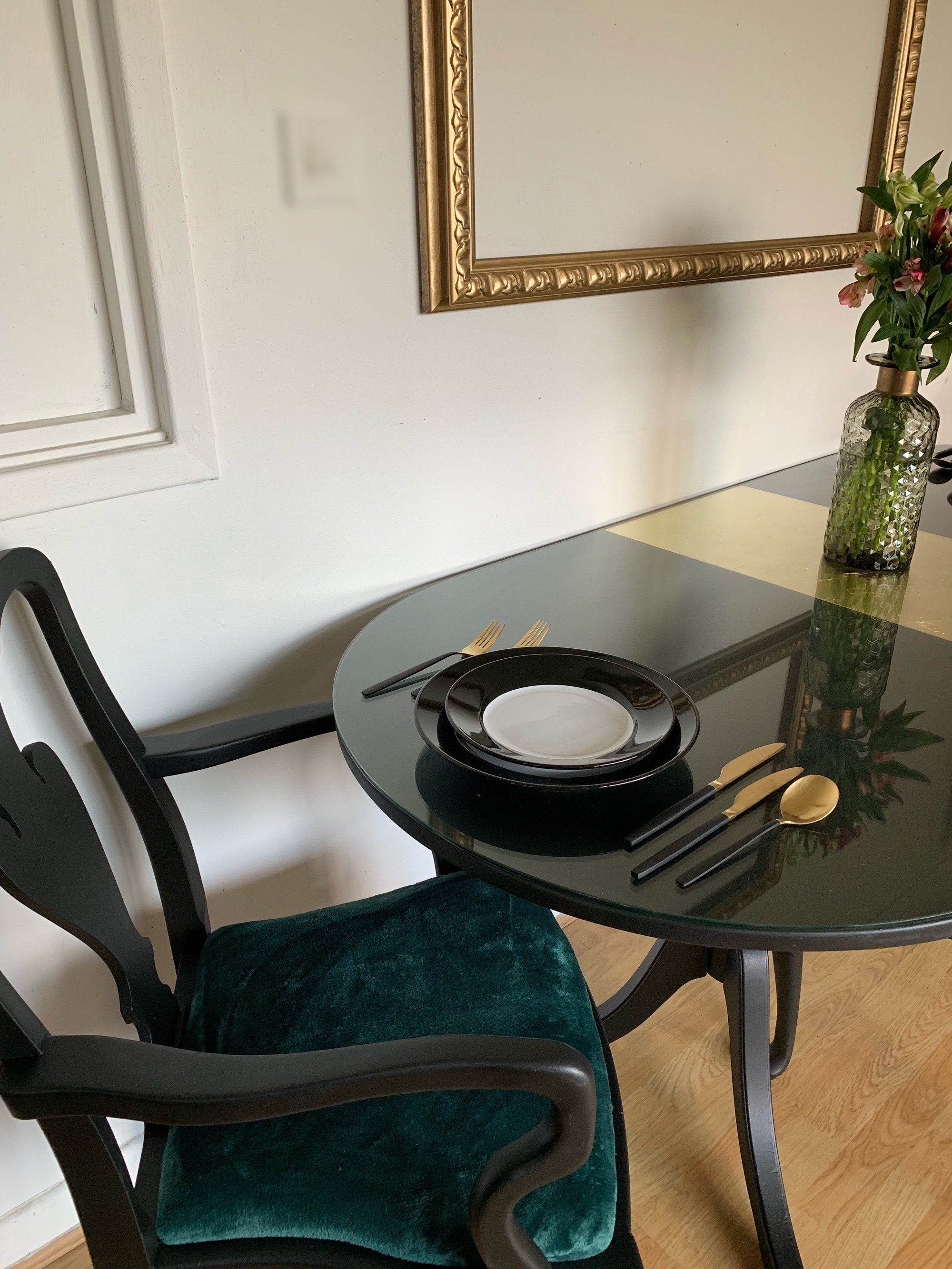 Black & Gold dining table with 6 chairs
