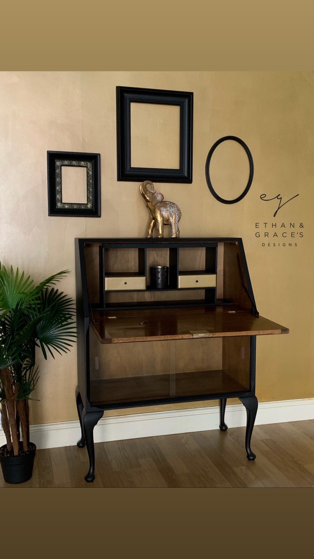 Black wooden & gold bureau drinks cabinet