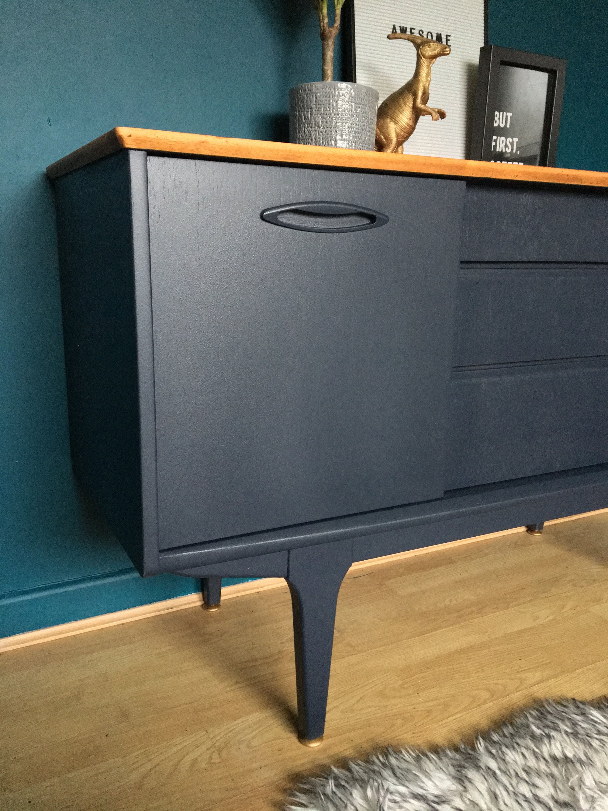This beautiful mid century modern teak sideboard has had a modern makeover however I’ve kept the top so the natural wood can shine through!