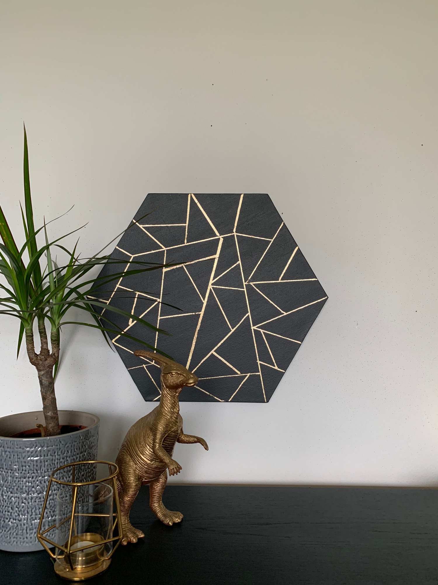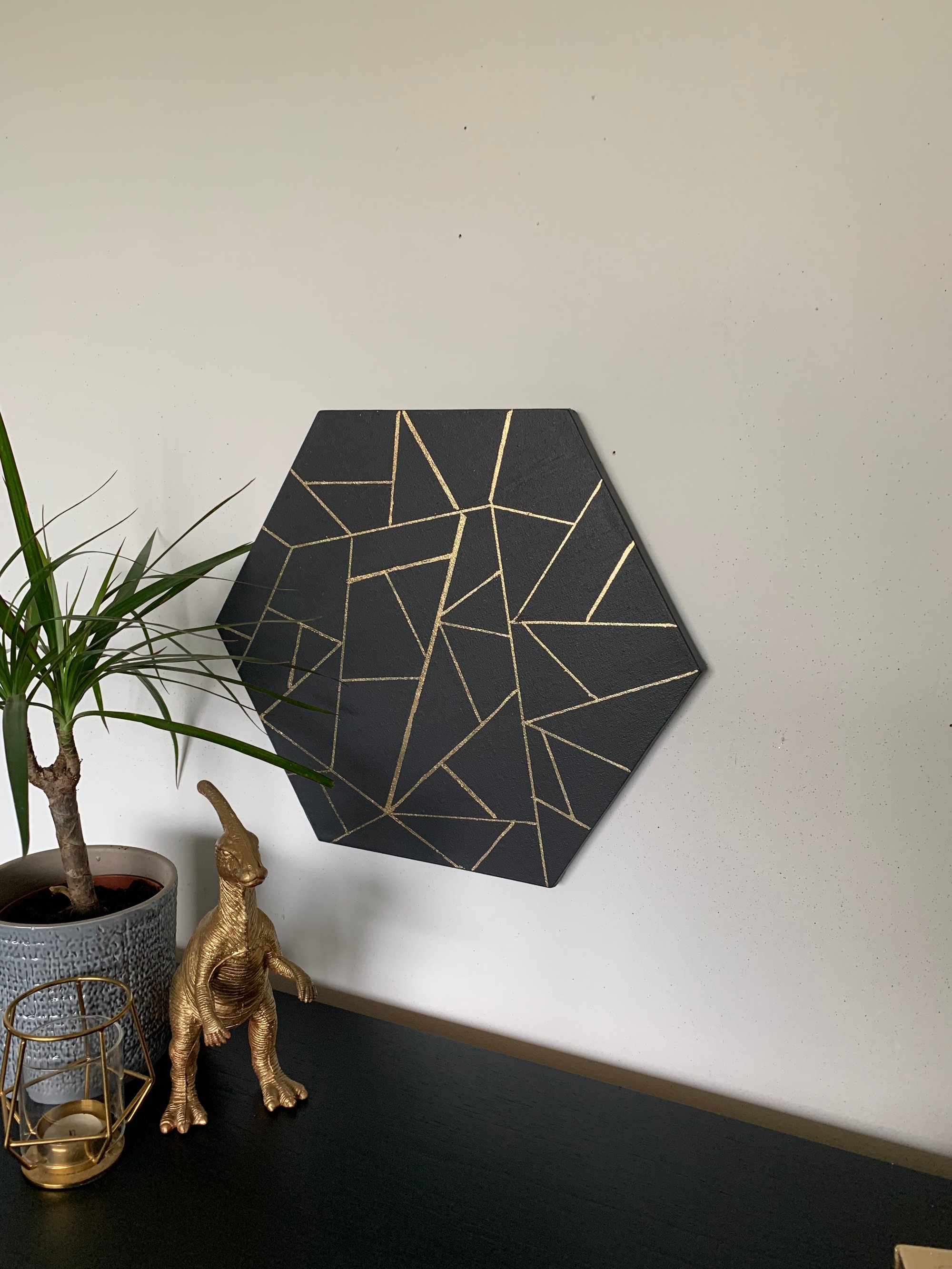 Dark grey and gold leaf canvas designed by Ethan & Graces