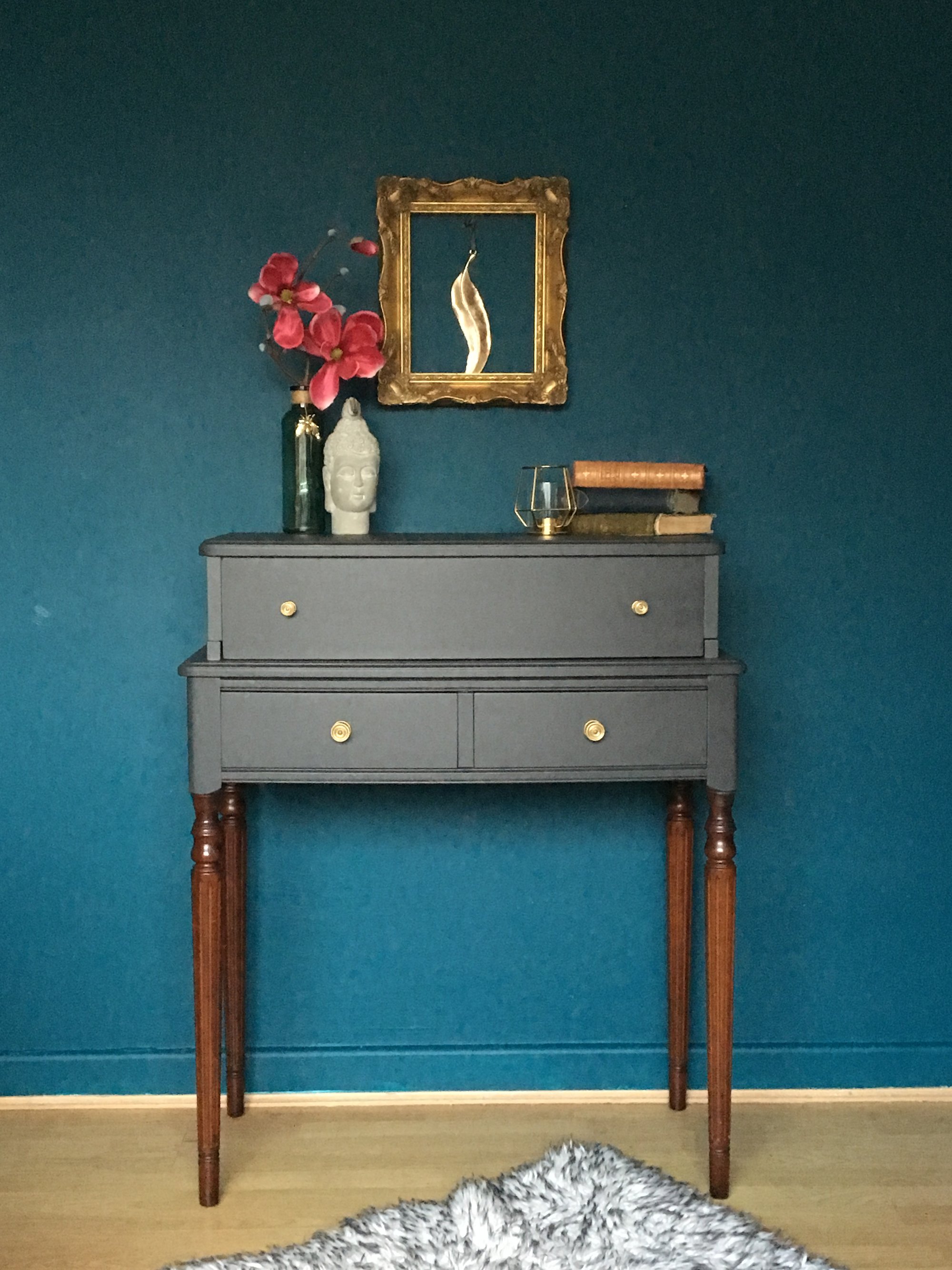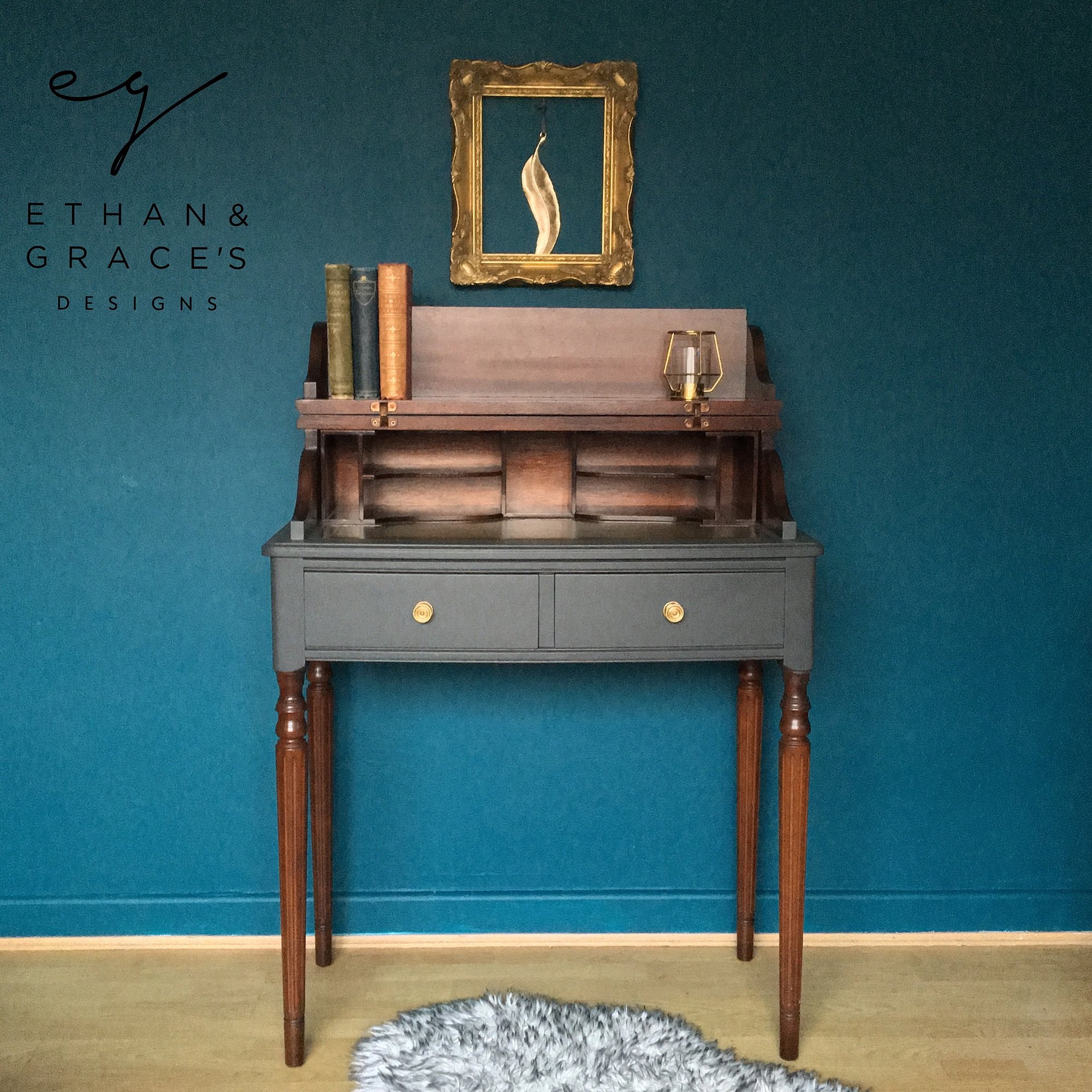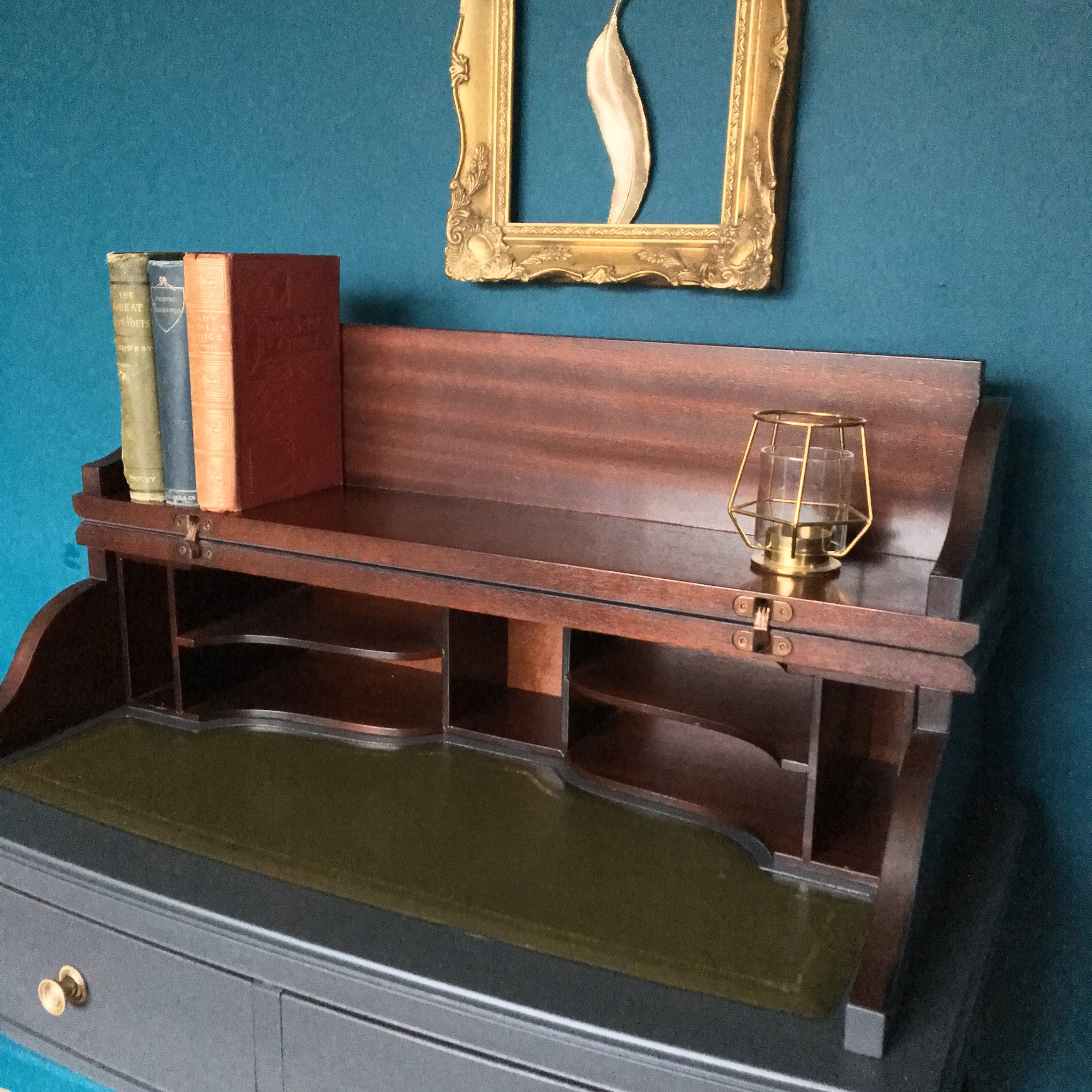 This piece is just beautiful, the top half has been painted in dark grey and sealed with varnish and the legs have been kept in original mahogany condition.