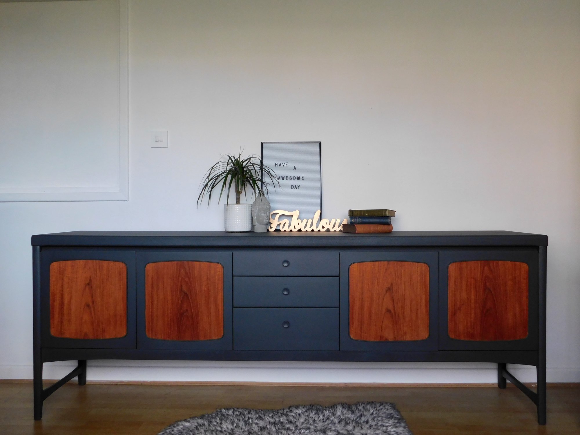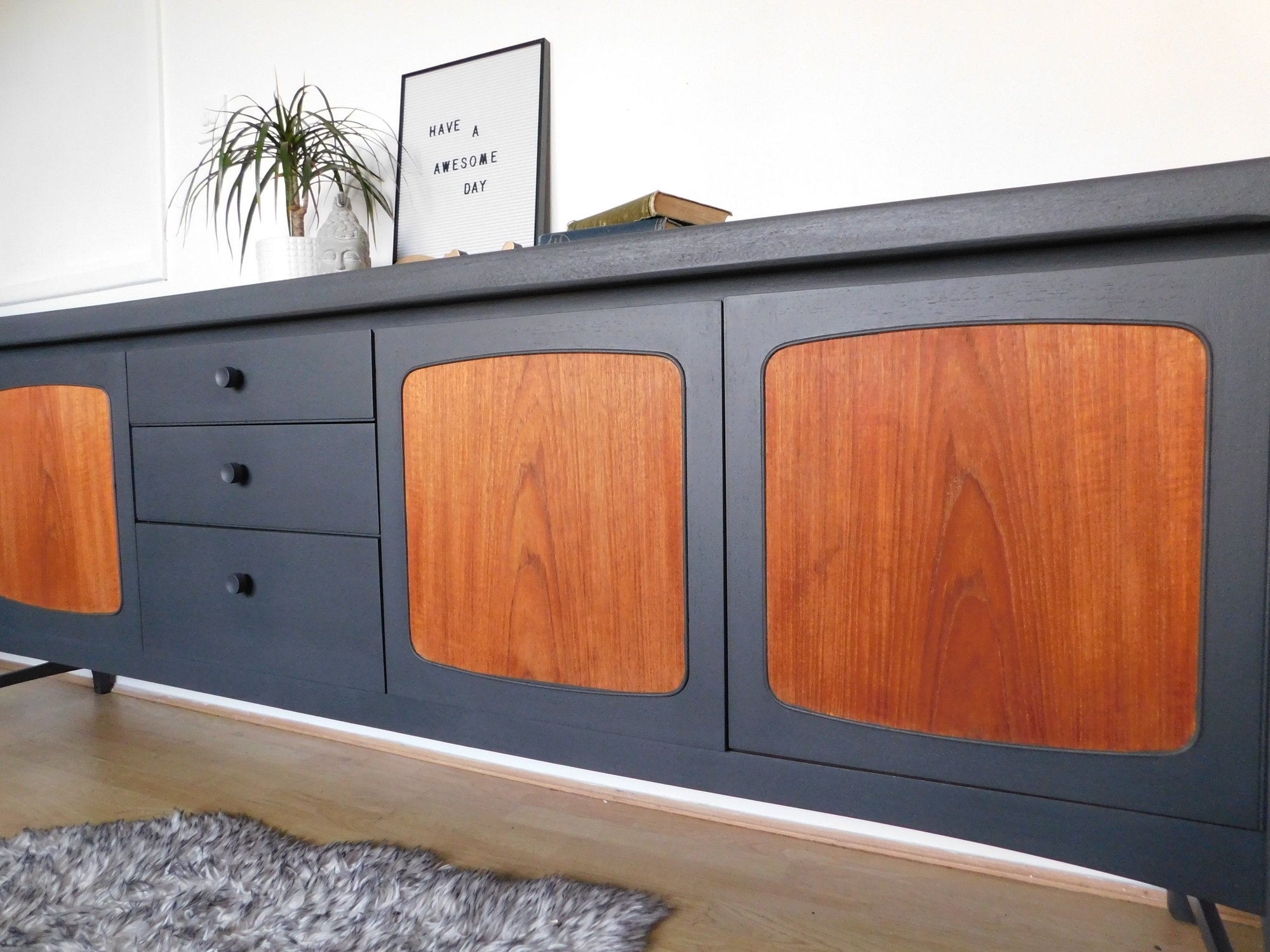 This stunning sideboard has been given a makeover in dark grey & sealed with layers of varnish.