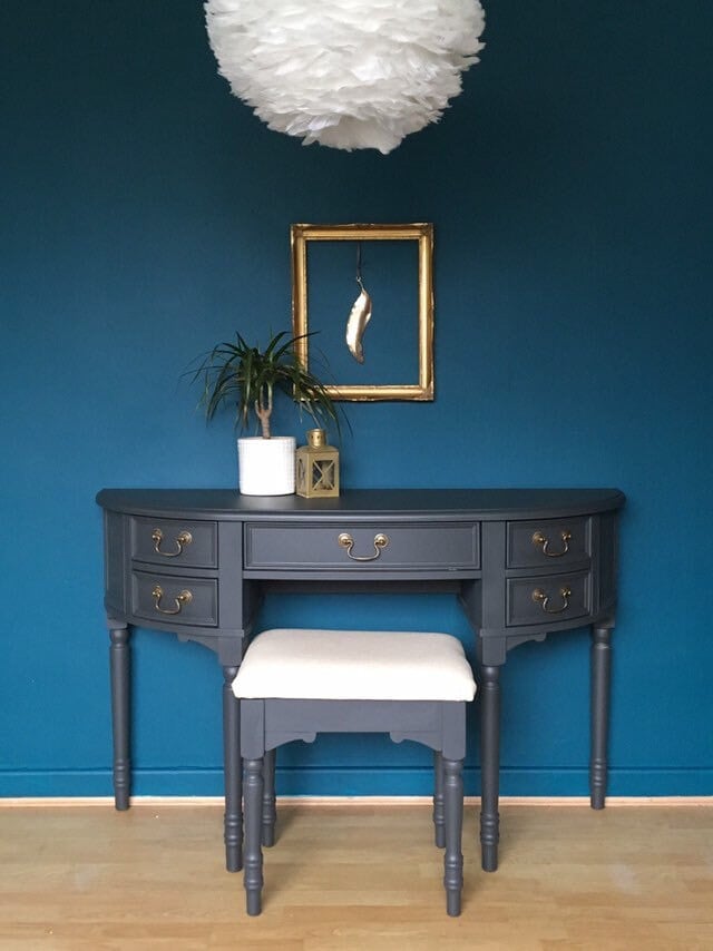 This piece has been taken over to the dark side! Painted in dark grey and sealed with layers of varnish to protect.
