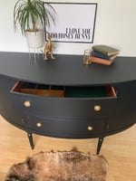 Painted in black and sealed with a Matt varnish , with gold hardware this really is a statement piece!