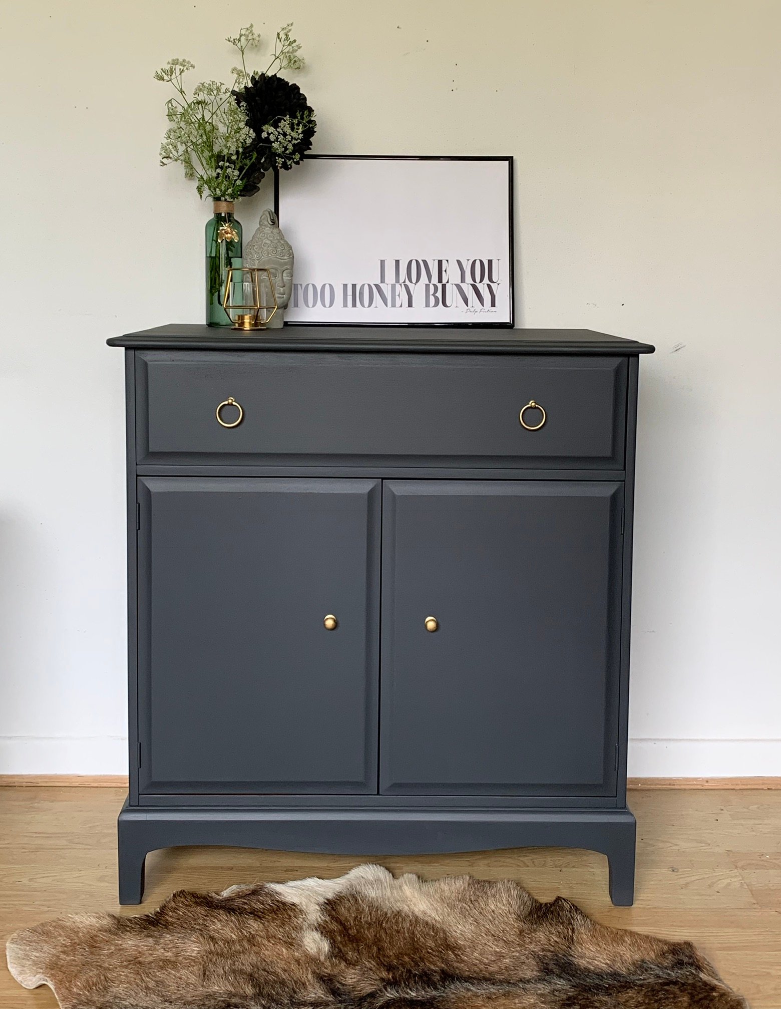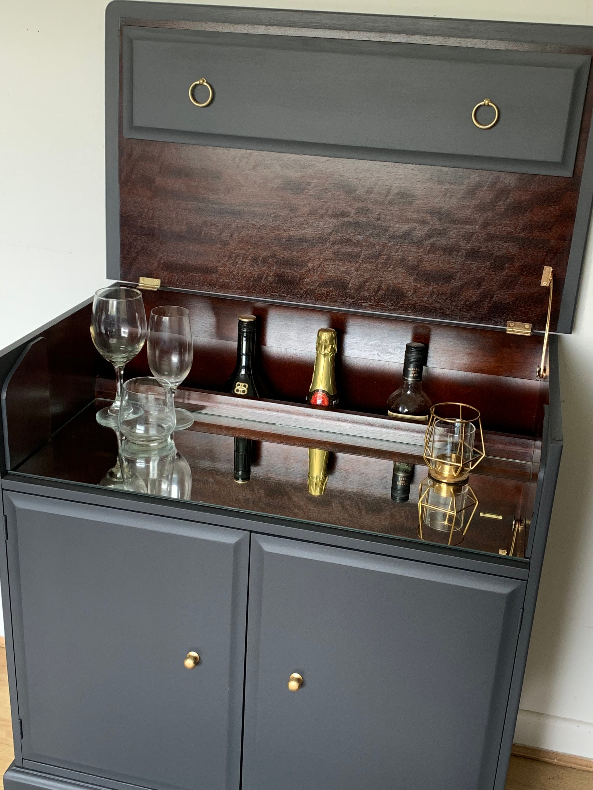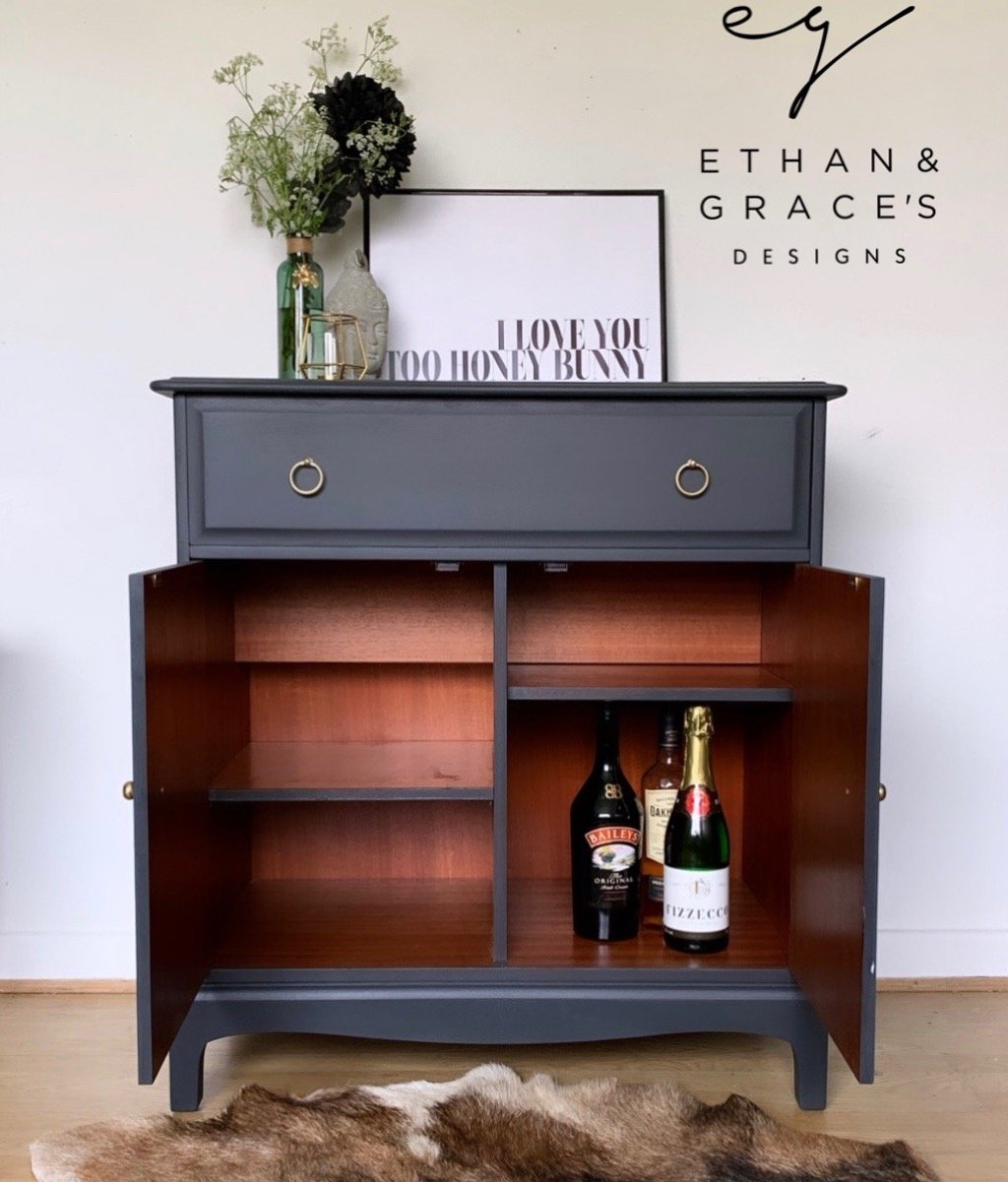 PROFESSIONALLY PAINTED Dark grey stag drinks cabinet