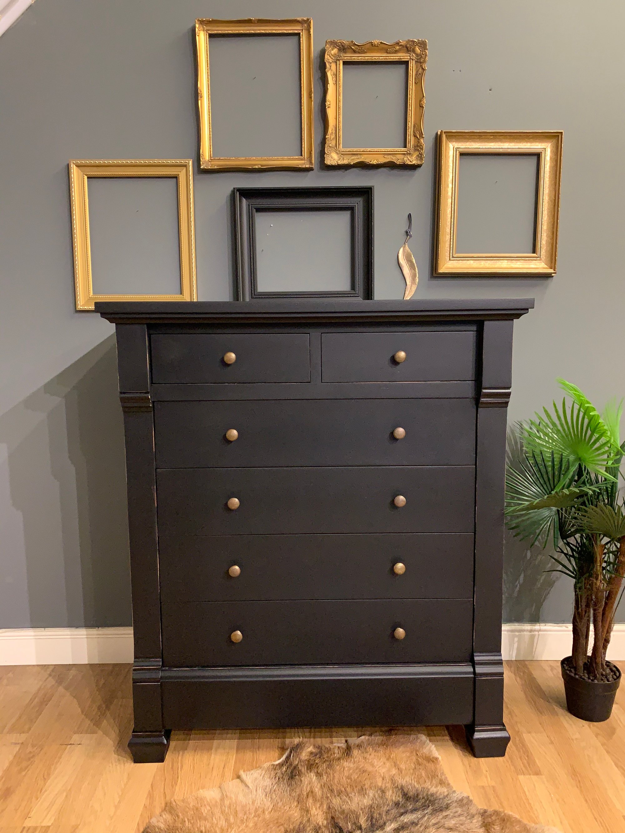 Painted in black, sealed with a Matt varnish and lightly distressed.