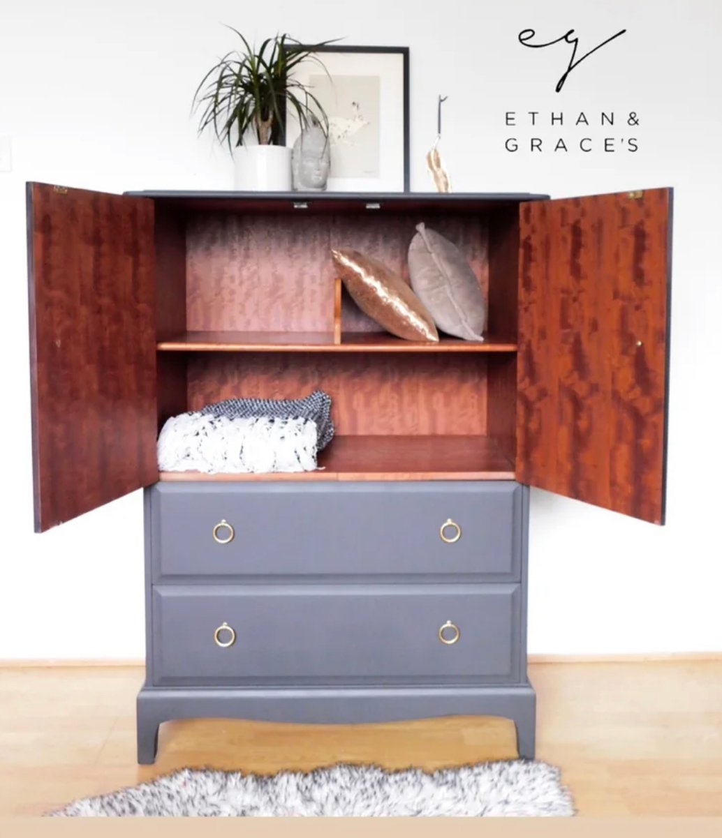 Stag mahogany linen cupboard in dark grey
