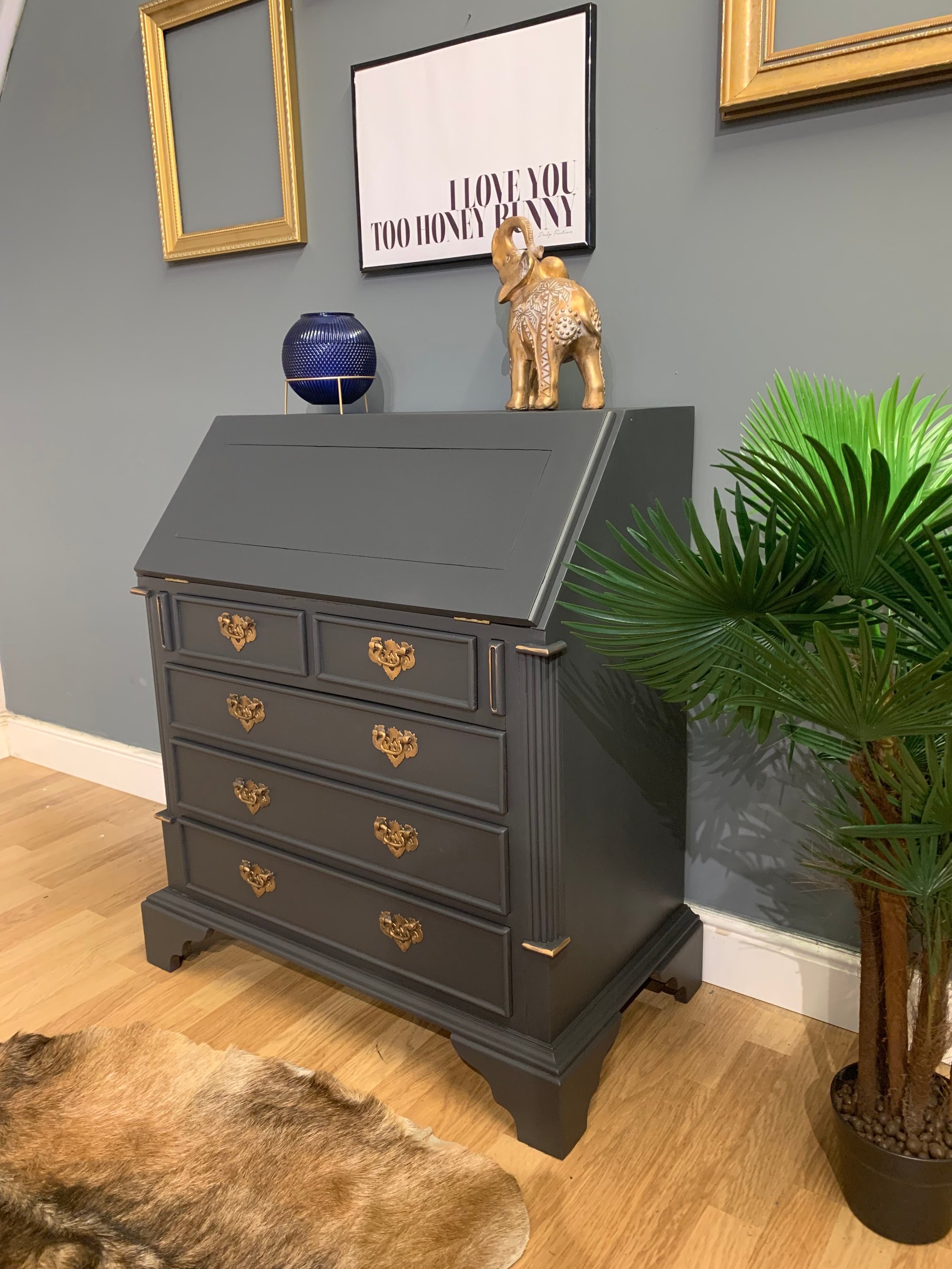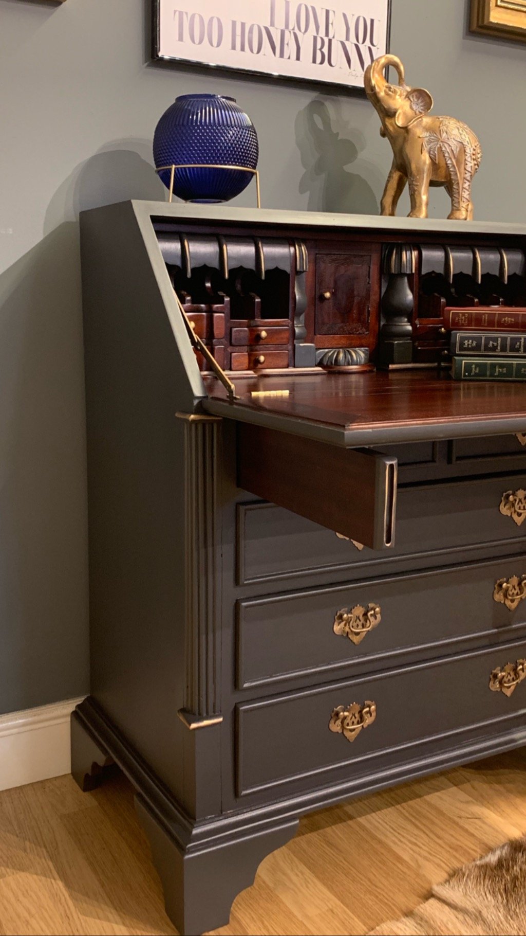 This piece has been given a makeover in dark grey and antique gold paste to give it that classic look!